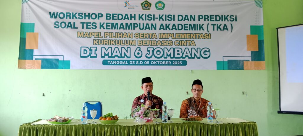 Jombang, 2 Oktober 2025 – MAN 6 Jombang kembali menunjukkan komitmennya dalam meningkatkan kualitas pendidikan dengan menggelar Workshop Bedah Kisi-Kisi Soal Tes Kemampuan Akademik (TKA) dan Kurikulum Berbasis Cinta. Kegiatan ini diikuti oleh para guru dengan penuh antusias dan semangat kebersamaan.