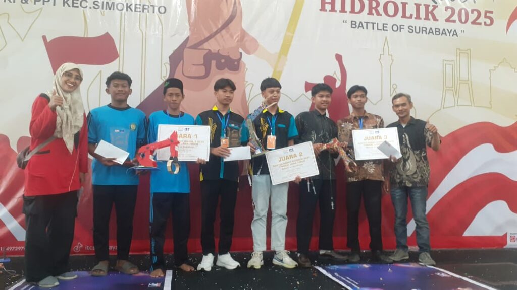 Surabaya — Kabar gembira datang lagi dari Madrasah Aliyah Negeri (MAN) 6 Jombang. Dua siswa berbakat madrasah ini berhasil menorehkan prestasi gemilang dengan meraih Juara 1 pada ajang Kontes Robot Hidrolik “Battle of Surabaya” Tahun 2025, tingkat Jawa Timur. Kompetisi berlangsung di Atrium Lantai LG ITC Surabaya, pada 12 November 2025.