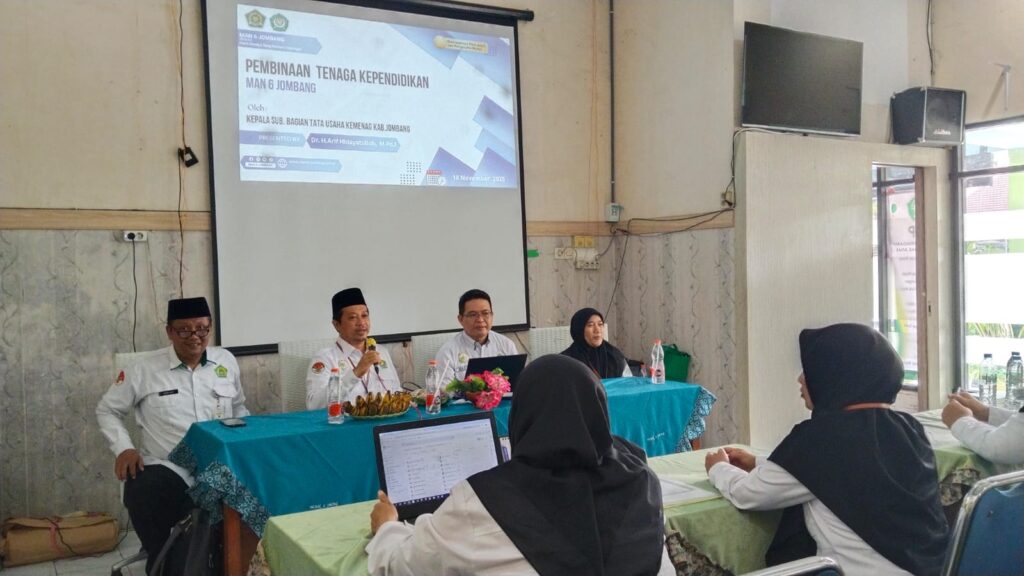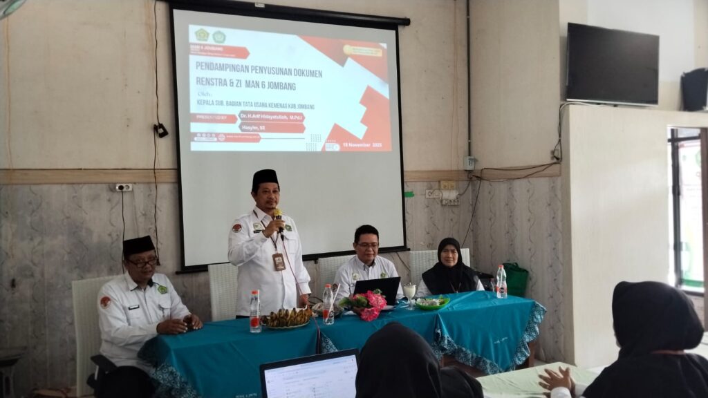 Jombang — Dalam upaya meningkatkan kualitas tata kelola lembaga pendidikan di bawah naungan Kementerian Agama, Kasubbag Tata Usaha Kementerian Agama Kabupaten Jombang melaksanakan kegiatan pembinaan tenaga kependidikan sekaligus pendampingan penyusunan dokumen Rencana Strategis (Renstra) dan Zona Integritas (ZI) di lingkungan madrasah, Senin 18 November 2025. Kegiatan ini menjadi bagian dari program penguatan manajemen dan reformasi birokrasi yang terus diupayakan Kemenag Jombang.