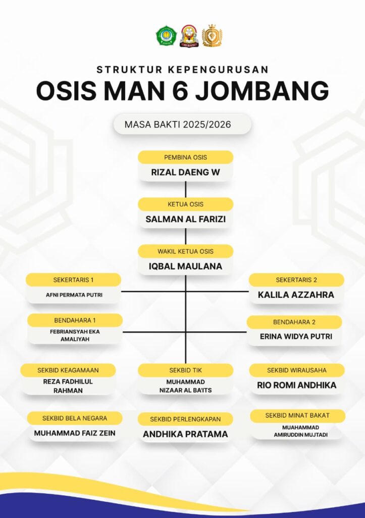 STRUKTUR KEPENGURUSAN OSIS MAN 6 JOMBANG MASA BHAKTI 2024/2025 adalah: